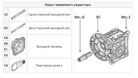 Общие технические характеристики червячных мотор-редукторов серии NMRV: