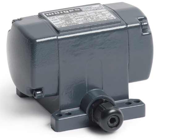 Прочный корпус изготовлен из литого в кокиле алюминия. Смазки специально подобранных подшипников хватит на весь срок службы двигателя. Имеется несколько уровней регулировки центробежной силы. Вибратор можно использовать в режиме непрерывной эксплуатации при полной настройке дебаланса с учетом допустимого значения потребления тока.