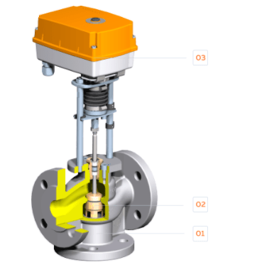 - Тип: трёхходовой смесительный регулирующий клапан.