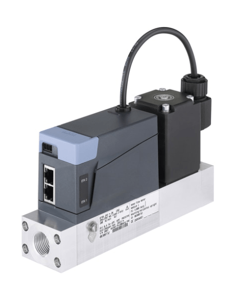 Регулятор массового расхода/массовый расходомер, тип 8745, используется для регулирования массового расхода газов в больших объемах. В зависимости от потребностей прибор типа 8745 может использоваться как регулятор массового расхода (MFC) или как массовый расходомер (MFM). Дополнительно доступна калибровка четырех различных газов. Температурный датчик Inline, расположенный непосредственно в потоке газа, обеспечивает очень высокое время реакции. Пропорциональный клапан прямого действия фирмы Burkert в качестве исполнительного органа обеспечивает высокую чувствительность при срабатывании. Интегрированный PI-регулятор обеспечивает великолепные регулирующие характеристики MFC. В качестве регулятора массового расхода прибор типа 8745 доступен в двух исполнениях: с электромагнитным пропорциональным клапаном и с пропорциональным клапаном, приводимым в действие при помощи электродвигателя.