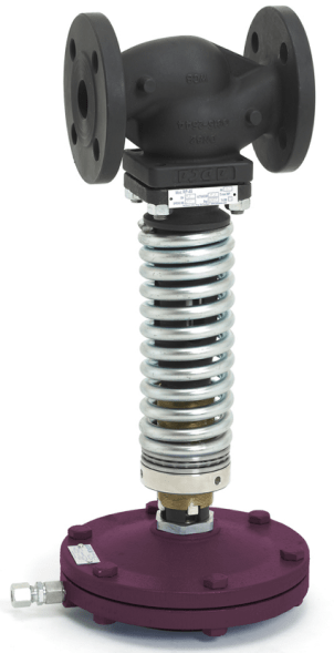 Снижение давления достигается дросселированнием потока в седле клапана. Сигнал выходного давления воздействует через импульсную трубку воздействует на мембрану или поршень, закрывая клапан. Пружина открывает клапан. Заданное значение давления на выходе определяется степенью затяжки пружины.