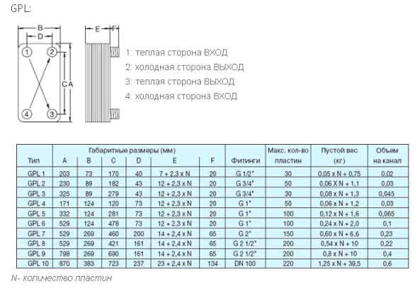 GPL, GPLK. Теплообменные пластины с V-рельефом для универсального применения при использовании сред с низким коэффициентом вязкости