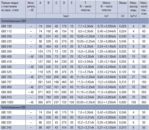Серия GBS – стандартная серия паяных теплообменников (применяется при давлениях до 30 бар и температурах до 200º С), серия GBE – экономичная серия (для давлений до 16 бар и температур до 150ºС).
