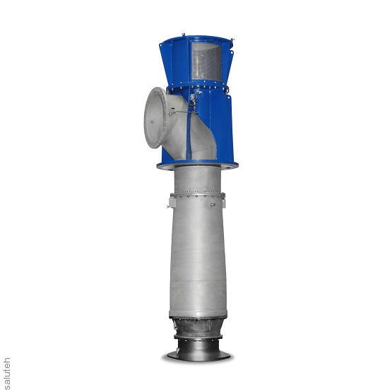 Вертикальный насос с трубчатым корпусом, одноступенчатый, с диагональным пропеллером. Всасывание по выбору с соплом или коленом, возможно процессное исполнение, износостойкие керамические подшипники, с напольным или подпольным напорным патрубком, фланцы по стандартам DIN или ANSI, опорная плита монтирована на напорном колене или фонаре привода. Пропеллер изменяемого шага, регулирование посредством электромеханического редуктора. Область применения: для подачи охлаждающей воды на электростанциях.