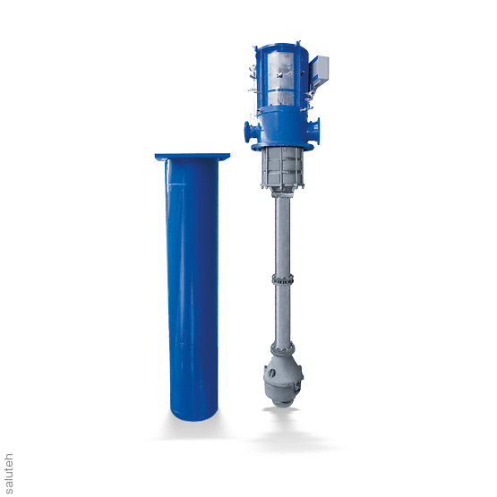 Вертикальный секционный баррельный насос для подпольной установки в шахте на опорной раме, многоступенчатый, радиальные рабочие колеса, однопоточный, фланцы по стандартам DIN или ANSI. Область применения: для перекачивания конденсата на электростанциях и энергетических установках.